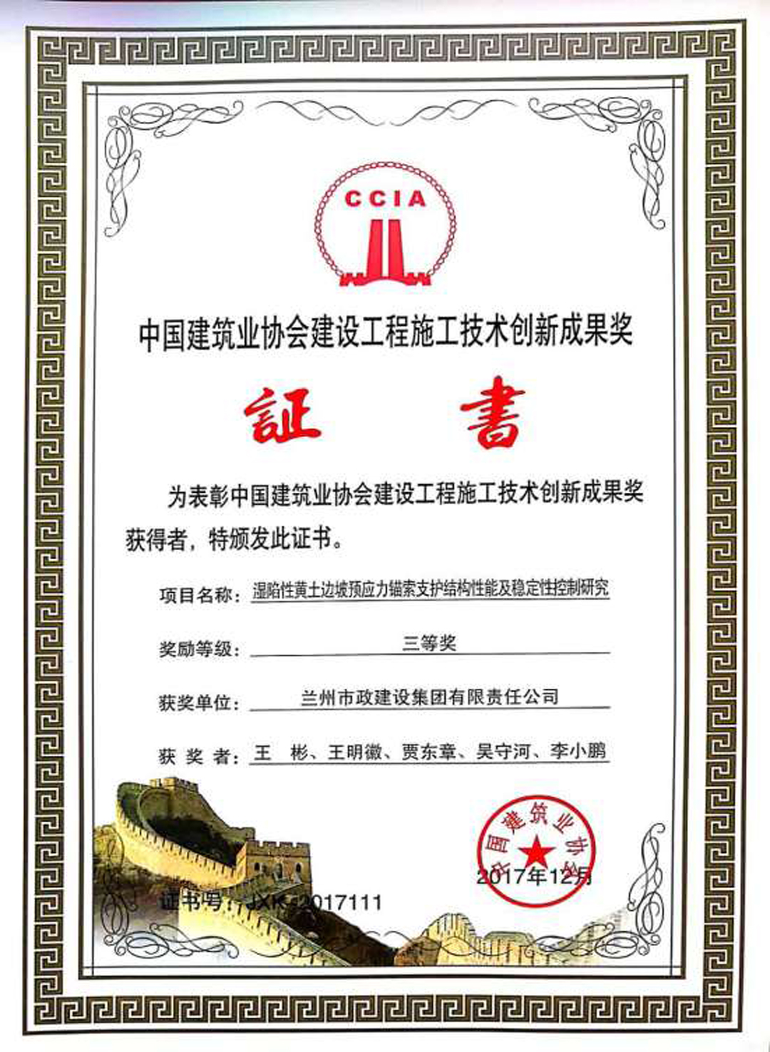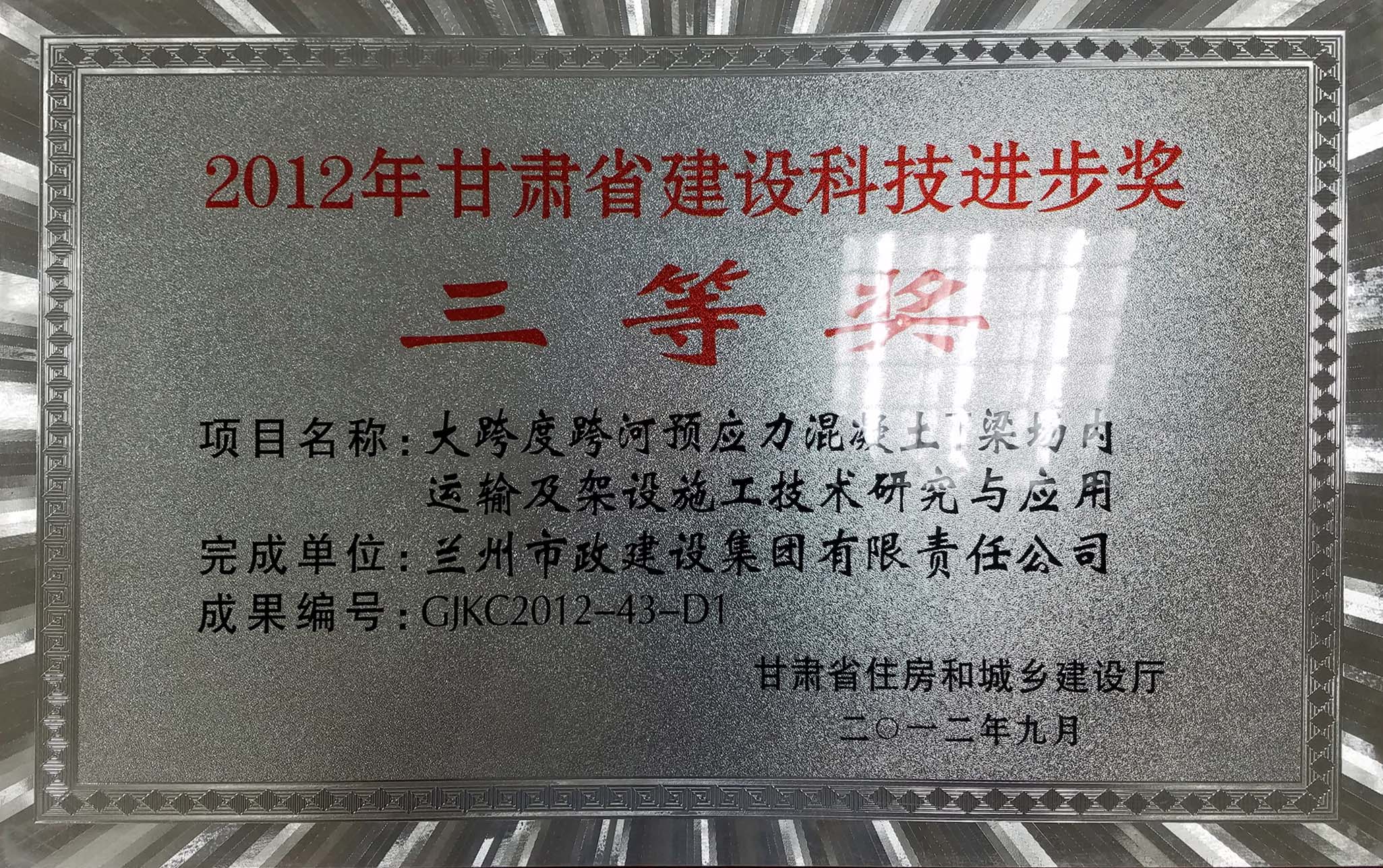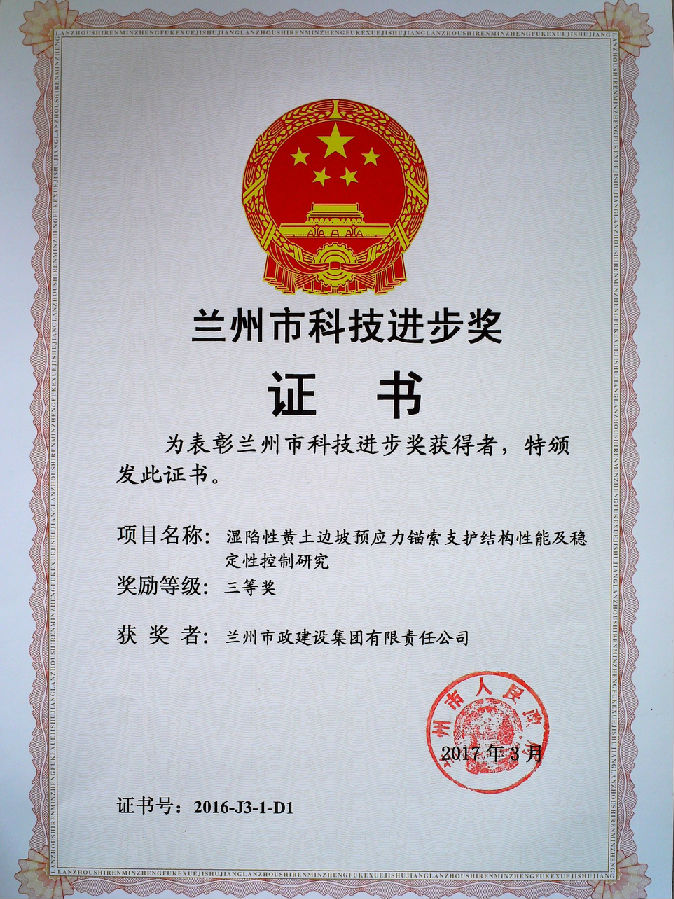 科技進步獎公司堅持實施“科技興司”戰(zhàn)略,產(chǎn)、學、研結合,大力開展“四新”技術及建筑業(yè)“十項”新技術的應用、研發(fā)和推廣,取得了一大批自主研發(fā)成果,公司獲得國家專利8項、國家級工法2項、省級工法20項、省建設科技進步獎15項、省建設科技示范工程4項,通過省建設科技成果鑒定21項,大部分科技成果處于國內領先水平,公司曾獲得“全國建筑業(yè)科技進步與技術創(chuàng)新先進企業(yè)”、“肅省技術優(yōu)勢企業(yè)”等稱號,公司技術實力處于西北同行業(yè)前列。